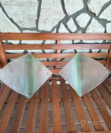 Coppia di paralumi in vetro di Murano anni ‘90. Spessore vetro cm. 1 circa. Applicabili a parete o a soffitto. Nuovi mai istallati, senza scheggiature, lesioni o rotture. Presentano inevitabili imperfezioni dovuti alla lavorazione artigianale. Dimensioni e distanza fori visibili nelle ultime foto.