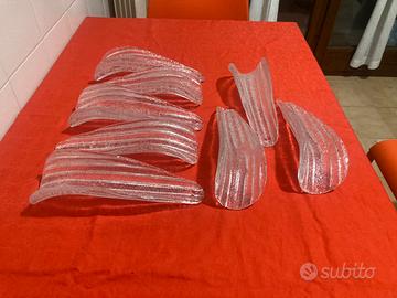 VENDO 8 VETRI DI MURANO CHIAMATI PETALI “SELLA” DA UTILIZZARE COME PEZZI DI RICAMBIO SU MEDESIMI LAMPADARI .INOLTRE SI POSSONO UTILIZZARE PER CREARE 2 APLIQUES DA PARETE CIASCUNA CON 4 VETRI . LUNGHEZZA CM 28 E LARGHEZZA CM 9 , VENDITA MINIMA 2 PEZZI . IL PREZZO SI INTENDE PER CADAUNO .