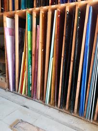 Causa smobilizzo laboratorio vetrate artistiche vendo vetri cattedrali, opalescenti ecc. di tutti i colori; piombo, libri di vetrate. Tutto a prezzi molto interessanti. Ho inoltre scaffalature per vetri (quelle che sono in foto) smontabili e rimontabili in altra sede. Tavolo per vetrate con alzata per grandi vetrate e porta piombi (quello in foto anche se un po' ingombro!)