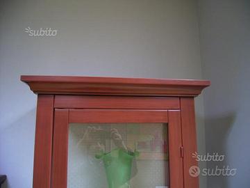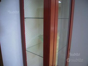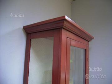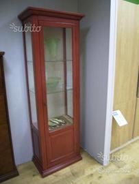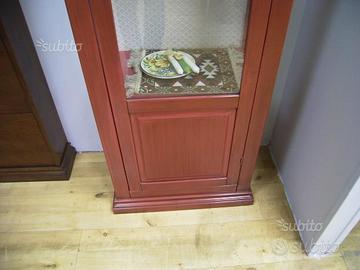 Vendo vetrina argentiera 1 porta in legno laccato rosso antico, con vetri laterali e frontali, 02 ripiani in vetro e 1 ripiano in legno, schienale tappezzato in tessuto. Misure larghezza cm 68, altezza cm 197, profondità cm 41. Merce nuova fine serie mobilificio. Prezzo outlet scontato € 190,00