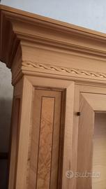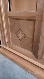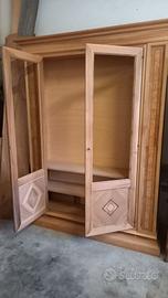 Vendo vetrina artigianale in noce 2 ante massiccia e ancora grezza da lucidare. Il mobile è abbellito da inserti di ulivo e spina-pesce di noce.
