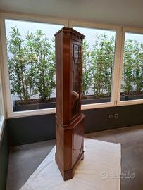 Vetrina angolare, stile inglese, mogano, base con vano portaoggetti, ripiano superiore con 3 ripiani in legno e vetri levigati Dimensioni 200 cm x 50 cm x 50 cm