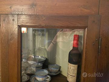 Presenta una parte superiore vetrata per esporre oggetti e una parte inferiore chiusa.