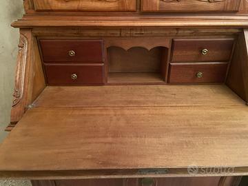 Parte centrale: Scrittoio a ribalta con piano ampio, interno dotato di 4 piccoli cassetti e 2 nicchie portaoggetti.