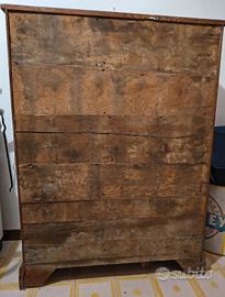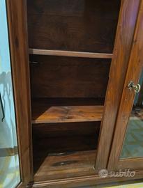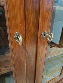 Vetrina Antica fine '800 legno massiccio Autentica Vendo splendida vetrinetta a due ante risalente alla seconda metà dell’Ottocento. Il mobile è un pezzo autentico d’epoca, come dimostrano i dettagli costruttivi artigianali visibili nelle foto ravvicinate, unici e non riproducibili industrialmente. Dettagli tecnici: Presenta le cerniere a perno originali in ferro, bocchette in ottone lavorato a mano coeve e la chiave originale con impugnatura sagomata tipica del XIX secolo. Costruzione: Struttura in robusto legno massiccio. Lo schienale è realizzato in assi di legno grezzo accostate a vista, testimonianza della manifattura d’epoca. Dimensioni: Altezza 125 cm, Larghezza 94 cm. Dimensioni compatte, ideali per valorizzare ingressi, corridoi o saloni. Condizioni: Struttura sana e robusta. La serratura dell'anta sinistra è funzionante con la sua chiave originale. L'anta destra richiede un piccolo intervento di revisione del meccanismo. Un mobile di grande fascino storico, perfetto per amanti dell'antiquariato o per un progetto di arredo classico e autentico.