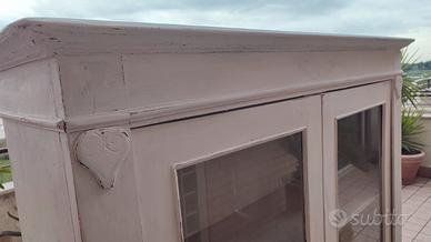 Mobile vetrina vero '700 francese originale in noce a 3 ripiani con serratura, trattata shabby (interni vernici atossiche ad acqua, esterni smalto) mis.