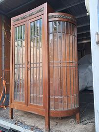 Vendo splendida vetrina Liberty originale dei primi del ’900 in legno massello con vetri piombati su ante e fianchi curvi.