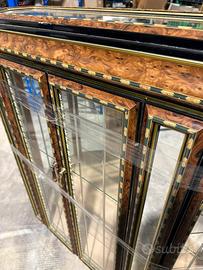 Struttura: Il mobile presenta una cornice in legno con una finitura che imita la radica, decorata con profili sottili neri e dorati.