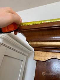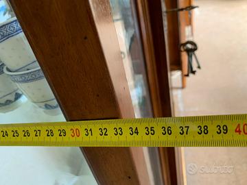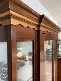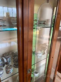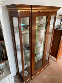 Vetrina argentiera con corpo avanti e cristalli soffiati stile cattedrale di noce anticato e laccatura in oro e faretti alogeni interni rifinitura in gomma lacca antica DIMENSIONI 130X34X198
