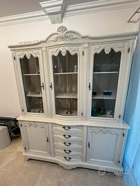 Vetrina vintage in legno bianco Vetrina armadio buffet credenza libreria. Tripla vetrina in legno massello con finiture in dettaglio. Larghezza: 180cm Profondità: 55cm Vendita su Roma