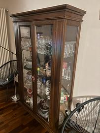 Bellissima vetrina arte povera anni 90 in legno massiccio e vetro. Misure : 190x114x44 Trasloco a carico dell’acquirente.