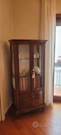 **Vetrina artigianale italiana in legno con intarsi e cassetti bombati**