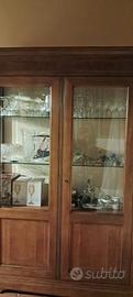 Il mobile è in legno di ottima qualità, solido e ben rifinito, con ante in vetro e ripiani interni in vetro, ideale come vetrina per cristalleria, servizi da tavola o oggetti di pregio.