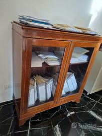 Splendida vetrina d’antiquariato, in stile inglese, pezzo di grande eleganza e raffinatezza, ideale per valorizzare qualsiasi ambiente, salotti, sale studio o studi professionali . Le linee pulite, sobrie e ben proporzionate consentono di arredare con eleganza qualsiasi ambiente dal classico al contemporaneo. Dotata di due ante con vetro e di un ripiano capiente e ben distribuita, la vetrina è funzionale e pratica permettendo di esporre libri, documenti, servizi di pregio, collezioni o oggetti decorativi. Realizzata con cura artigianale, si distingue per la qualità dei materiali e per i dettagli finemente lavorati che testimoniano l’autenticità e il pregio dell’epoca. In buone condizioni generali, ben conservata nel tempo, questa vetrina rappresenta una scelta ideale per gli amanti dell’antiquariato e per chi desidera aggiungere un tocco di eleganza e storia alla propria casa. Dimensioni : altezza 126 cm - larghezza 117 cm - profondità 45 cm
