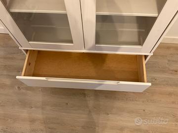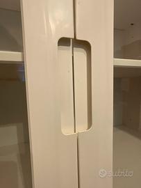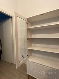 Vetrina MOLDE bianca 90x35 H 175. Con due ante e due cassetti. Design scandinavo in legno massello di pino verniciato con vernice UV (asciugatatura a ultravioletti) che ne conferisce una finitura più vivida. Le ante sono in vetro temperato. In ottime condizioni, usata veramente poco. Vendo per passaggio a vetrina più grande.