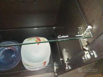 vetrina con illuminazione integrata l 120x h 100 Ca con vetri spessi cm 1 molto robusto colore wenge' marchio Calligaris di alto design.