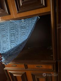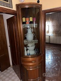 Mobile soggiorno composto da vetrina grande + vetrina angolare, entrambe in legno color noce in buone/ottime condizioni, stile classico ed elegante.