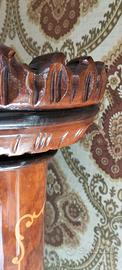Mobile in noce scolpito a mano con ripiani di cristallo e fregi in vernice oro.