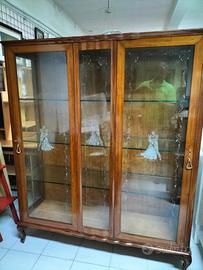 Vetrina classica 3 ante noce vetri serigrafati. Misure larghezza cm 150x44. Altezza cm 180. In ottime condizioni di conservazione se rapportate al tempo. Liberamente visionabile presso Vitanova, mercatino dell'usato a Vasto (Ch), via Palermo, 18.