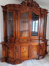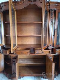 SOLO PER REALMENTE INTERESSATI, NO PERDITEMPO. SVENDITA. Vendo vetrina/soggiorno classico in legno massello, completa, in ottime condizioni strutturali. Mobile importante, lavorazioni intarsiate e vetri laterali curvi. Molto capiente. Ideale per taverna, casa grande, studio, attività . Prezzo: €120 NON trattabili (già svenduta per liberare spazio). ⚠️ Dimensioni importanti: valutare bene spazi e trasporto. ⚠️ Ritiro e smontaggio totalmente a carico dell’acquirente. ⚠️ No perditempo, no trattative infinite. Primo che conferma e viene a prenderla la porta via. Disponibile finché l’annuncio è online.