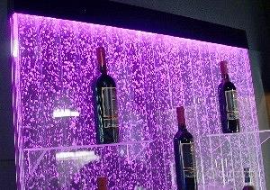 Misure: altezza 180 cm, larghezza 80 cm, profondità 20 cm Pompa interna nascosta nel basamento. Voltaggio: 220V - 50Hz Consumo: 20 Watt Peso: 15 kg Il prezzo si intende più Iva 22% più spese di spedizione oppure ritiro a Pordenone. Questo e altri prodotti sono visibili su aqualeddesign. Suggestivo e innovativo pannello d'acqua luminoso costruito con materiale di ottima qualità che crea un'effetto in movimento di bolle con uno stimolante e calmante impatto visivo. Ideale per decorare e abbellire case, locali, teatri, pub, discoteche, negozi, ecc., da usare come sfondo a parete, come separé, divisorio o vetrina artistica, a seconda della vostra esigenza. Composto da vari scompartimenti incanalati dai quali fuoriesce un'infinità di bolle che salgono dal basso verso l'alto e mensole per appoggiare oggetti. Possibilità di regolare in ogni singolo scompartimento il flusso e la grandezza delle bolle. Pannello costruito interamente in policarbonato trasparente con basamento e supporto superiore sempre in policarbonato di colore nero. Il policarbonato è un materiale 17 volte più resistente del vetro pertanto non corre rischi di possibili rotture e soprattutto è resistente ai graffi. Inserire all'interno del pannello acqua distillata per un corretto funzionamento della pompa. Sistema di illuminazione a led RGB multicolore con vari giochi selezionabili grazie al telecomando: monocolore ( bianco, blu, verde, rosso, ecc.) evanescenza di colore, luce strobica, giochi di luce, combinazioni di colore. Le bolle vengono prodotte da una pompa, silenziosa (rumorosità inferiore a 40 dB) e con un bassissimo consumo energetico, che emana un grosso flusso d'aria regolata da valvole di ritegno. La spedizione va calcolata in base alla destinazione del materiale