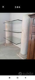 Vetrina da soggiorno con colonne piene in travertino. Pezzo unico realizzato su ordinazione dagli artigiani delle cave di marmo di Bagni di Tivoli. Ingombro massimo 130x45 Vetri 90x45 Colonne diametro 20 x 120 altezza. Ottime condizioni