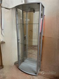 Vetrina in ottimo stato, sportello con chiusura a calamita, 3 mensole in vetro e specchio sulla parete in fondo.