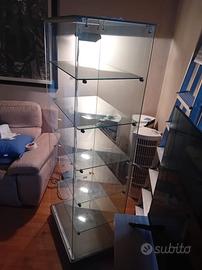 Vetrina con ripiani interni. Struttura interamente in vetro. In buone