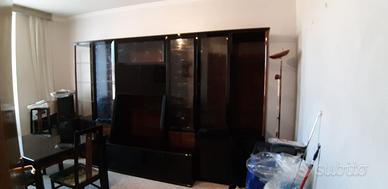 Soggiorno completo in vendita nero lucido e radica in ottime condizioni. Misure: vetrina porta tv 323x40/60 con tavolo apribile e 6 sedie come nuove ancora con la plastica originale. Richiesta 500 euro trattabili