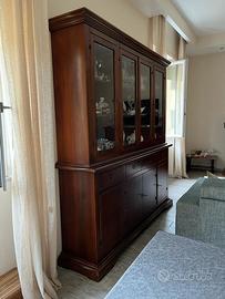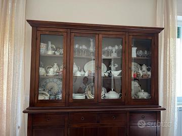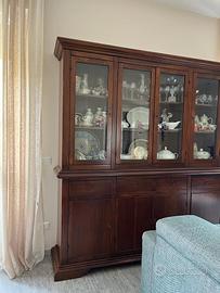 Dimensioni: altezza circa 220 cm (98 cm credenza + 121 vetrina superiore), lunghezza 200 cm, profondità 36 cm vetrina e 41 credenza