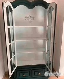 Vendo bellissima vetrina in legno, riverniciata con prodotti all’acqua a base gesso!! Tre ripiani interni in legno, due cassetti! Interna color bianco esterno bellissimo color grigio blu!! Ritiro a carico dell’acquirente zona ivrea!! Possibilita di trasporto gratuito nell’arco dei 20/30km da ivrea x info contattatemi! Misure altezza 2metri, larghezza 1,20, profondita 30cm!!