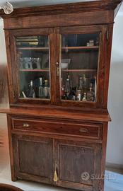 Vendo antica vetrina cristalliera, restaurata. Con grande cassettone, mensola sia in vetrina che sotto il cassettone. 2 pezzi.