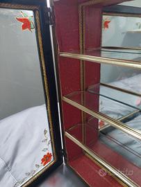 Vetrina da parete vintage rettangolare in legno con sportello in vetro decorato con fiori rossi e a chiusura magnetica