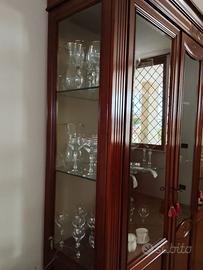 Vetrina da salone in legno con ripiani in cristallo (CATHEDRA) All interno 4 cassettini centrali