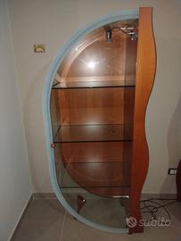 A malincuore vendo bellissima vetrina a colonna in vetro e legno, composta da due pezzi separati con un design moderno caratterizzato da linee curve. Questo tipo di mobile è spesso definito come "credenza a vetro curvo" o "vetrina in vetro curvo e legno".La struttura è in legno di ciliegio, con ripiani interni in vetro e una parte esterna in vetro curvato che ne segue la forma. Il mobile ha un design distintivo e scultoreo, con ogni colonna che si incurva verso l'interno, creando uno spazio centrale tra le due metà dal design unico. È adatta per esporre oggetti decorativi, servizi di bicchieri o da collezione, funzionando come un elemento d'arredo elegante per la sala da pranzo o il soggiorno. La qualità è ottima. Ritiro in loco perché si tratta di un oggetto delicato e preferisco non spedirlo.