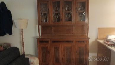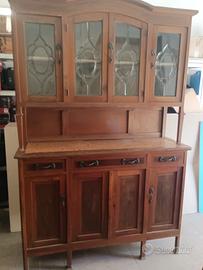 vetrina anni 40 produzione italiana in legno massello di noce nazionale, con vetri piombati, incisioni sulle ante e piano in marmo di Verona. misure in cm 140 x 50 x 210 (LxPxH) Roma ritiro zona Casetta Mattei