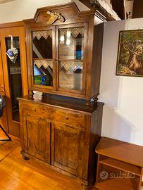 Vendo, causa cambio arredamento, antica vetrina/credenza in legno e cassa panca. Misure: Vetrina 113x214x46, cassa panca 68x104x45