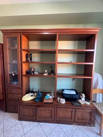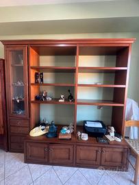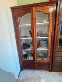 Vetrina e libreria in legno massello, elegante e ben tenuta (vendibili anche separatamente)