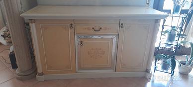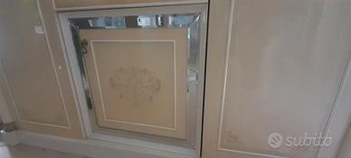 In vendita vetrina e mobile da soggiorno stile classico moderno bianco perla con finiture oro e specchio. misure della vetrina L195cm x P52cm x H228 cm la parte più alta, mobile L169cm x P60cm x H93cm il tutto è in perfette condizioni, visibile presso la mia abitazione previo accordi.