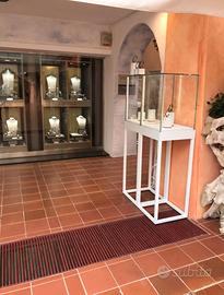 Proponiamo in vendita 7 vetrine da esposizione per gioielleria, nuove di zecca e mai usate(ancora perfettamente imballate dal fornitore), ideali per l’allestimento di negozi di gioielli, orologerie o boutique di alta gamma.