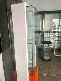 Vetrina espositiva in vetro con base arancione