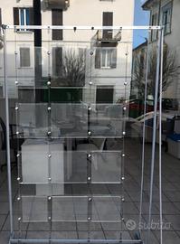 Vendo elegante vetrina espositiva modulare composta da pannelli in plexiglass trasparente, ideale per negozi, uffici, showroom o esposizioni. La struttura è leggera ma stabile, con telaio in metallo e pannelli sospesi tramite cavi e distanziatori, che creano un effetto moderno e minimale. Perfetta per esporre annunci, prodotti, brochure o materiale pubblicitario mantenendo massima visibilità grazie alla trasparenza. Caratteristiche: Struttura in metallo resistente Pannelli in plexiglass trasparente Design moderno e professionale Facile da montare e smontare Ottima per vetrine fronte strada Buone condizioni generali Ideale per: negozi, agenzie immobiliari, uffici, esposizioni, studi professionali