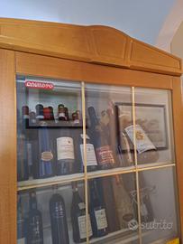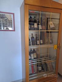 Vetrina frigo per bottiglie. Mobile in legno interno laccato bianco "Angelo Po'' con refrigetatore e luce interna. Capacità 90 bottiglie circa. Misure ,h 1,85 larghezza 82, 5 ,profondità 45,5, misura interno porta h 1,40. Prezzo 800€