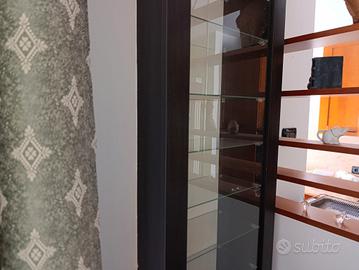vetrina Ikea nera perfetta con scomparti nr 10 , ripiani in vetro, misure porta 42,5 cm larga, altezza 162 cm, profonda 18,5cm ,interno più piccolo
