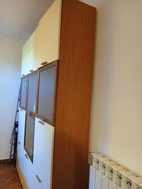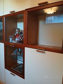 Vetrina in legno ciliegio color panna/ciliegio, ottima fattura come nuova con coordinato di 4 sedie imbottite marca Calligaris + tavolo sempre in ciliegio. misure vetrina 180 cm x 2,32 x 38 prof. - tavolo 90 x 90 - 4 sedie blu imbottite come nuove . ritiro sul posto zona Casalotti