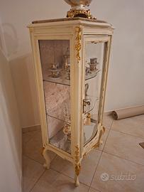 vendo Vetrina usata (come foto) in legno avorio e oro con piano in marmo e tessuto damascato (vetro anta non in vetro ma plexiglas) Misure: Altezza cm 132 - Profondità cm 42 - Larghezza cm 63 N.B. l'annuncio prevede solo la vetrina. gli altri oggetti hanno solo su richiesta con prezzo da concordare. inoltre i costi di spedizione sono sconosciuti quindi indicativi.