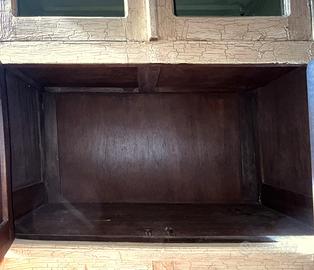 Vetrina in legno, con effetto craquelé. Buono stato generale, non vi sono danni strutturali. Sono presenti normali segni di usura dovuti al tempo. Nella parte inferiore, la chiusura dell’anta destra presenta un lieve difetto di semplice sistemazione. Misure: Altezza 180 cm Larghezza 95 cm Profondità 42 cm Ritiro a carico dell’acquirente, leggero margine di trattativa.