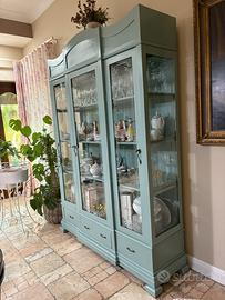 Vendo splendida vetrina in legno massello, restaurata e rifinita in delicato verde salvia, dallo stile shabby chic / provenzale.