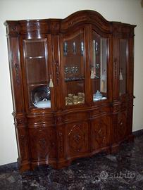 VETRINA IN LEGNO MASSELLO DI OTTIMA QUALITA' COME NUOVA. MOBILIE DA VEDERE DI PERSONA, TENUTA IN OTTIMO STATO. Misure Vetrina Max.Prof. centrale cm.45 x H.cornice centrale cm.225 (H.laterale cm.211) x L. cm.216. RITIRO A CARICO ACQUIRENTE