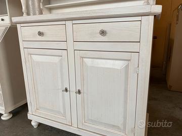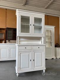 Vetrine nuove da azienda in legno massello, di nostra produzione artigianale visibili presso nostra esposizione, 2 ante su base con pannelli diamantate in legno con 2 cassetti e 2 porte in vetro su alzata,